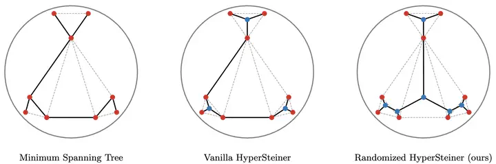 We study the problem of constructing Steiner Minimal Trees (SMTs) in hyperbolic space. Exact SMT computation is NP-hard, and existing hyperbolic heuristics such as HyperSteiner are deterministic and often get trapped in locally suboptimal configurations. We introduce Randomized HyperSteiner (RHS), a stochastic Delaunay triangulation heuristic that incorporates randomness into the expansion process and refines candidate trees via Riemannian gradient descent optimization. Experiments on synthetic data sets and a real-world single-cell transcriptomic data show that RHS outperforms Minimum Spanning Tree (MST), Neighbour Joining, and vanilla HyperSteiner (HS). In near-boundary configurations, RHS can achieve a 32% reduction in total length over HS, demonstrating its effectiveness and robustness in diverse data regimes.